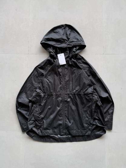BLACK PACKABLE HOODED JACKET