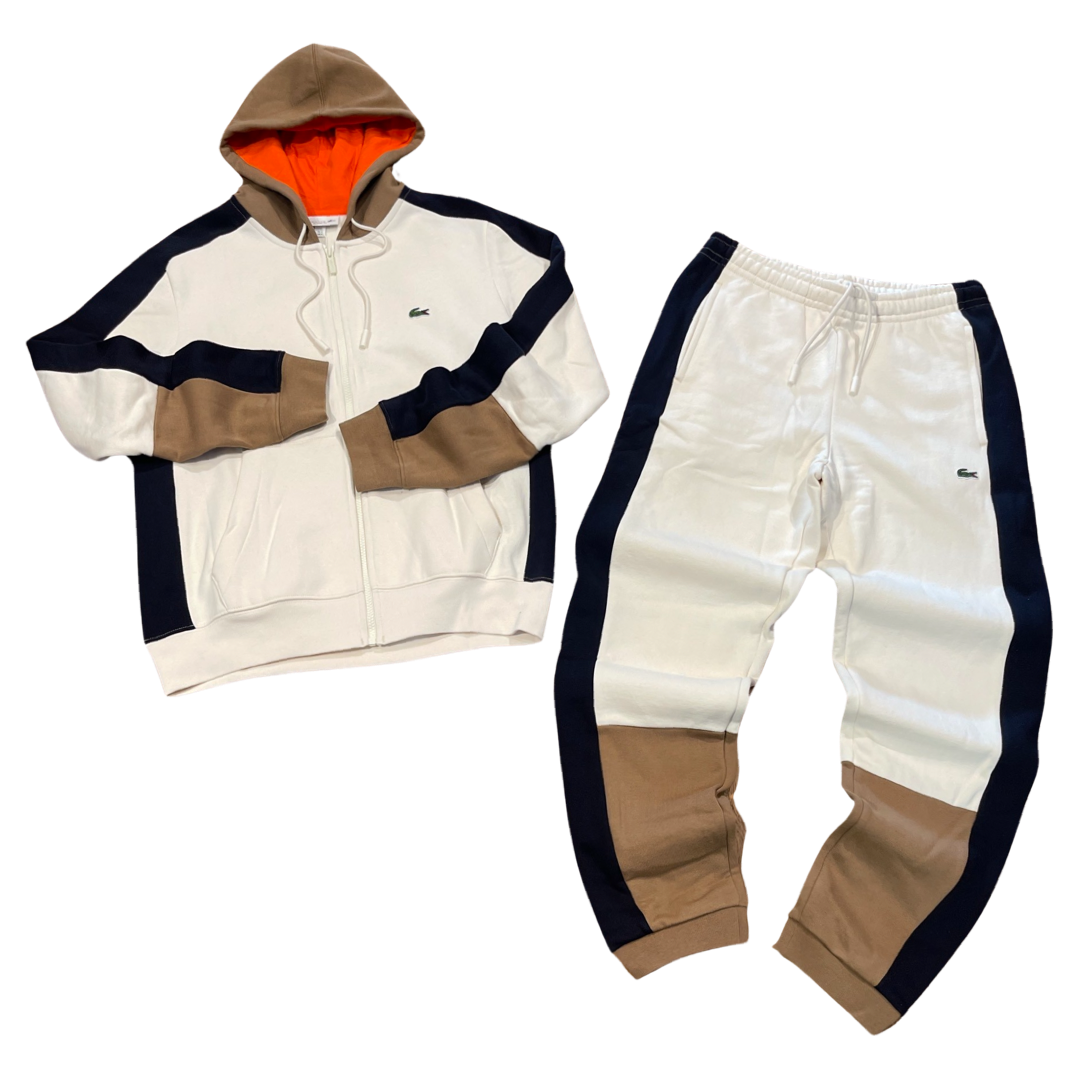 FUll ZIP HOODED CLASSIC SWEATSUIT Men’s -WHITE -BROWN-SIX NAVY