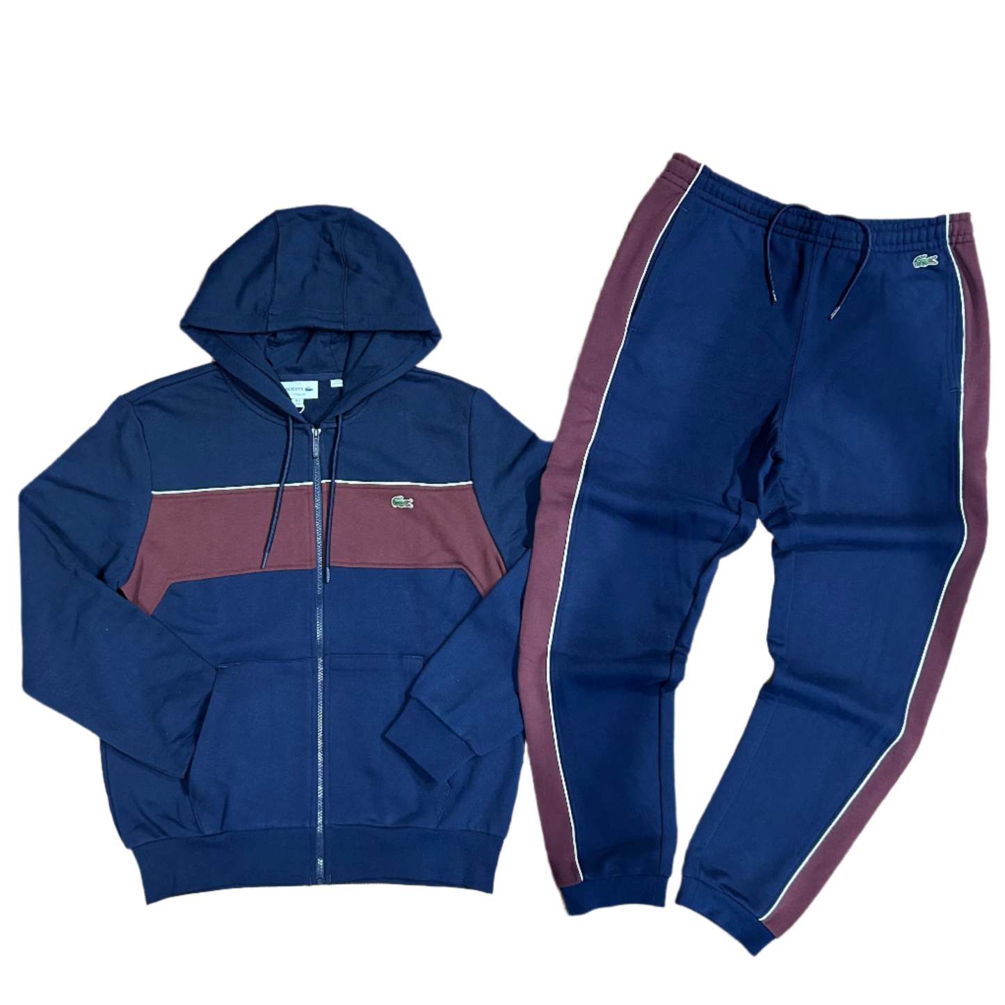 LACOSTE FUll ZIP-UP COLORBLOCK HOODIE SWEATSUIT Men’s -NAVY BLUE-BORDEAUX -IE3