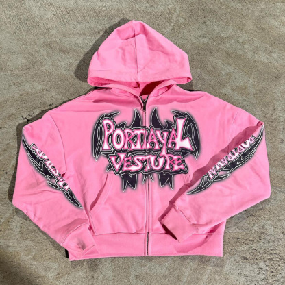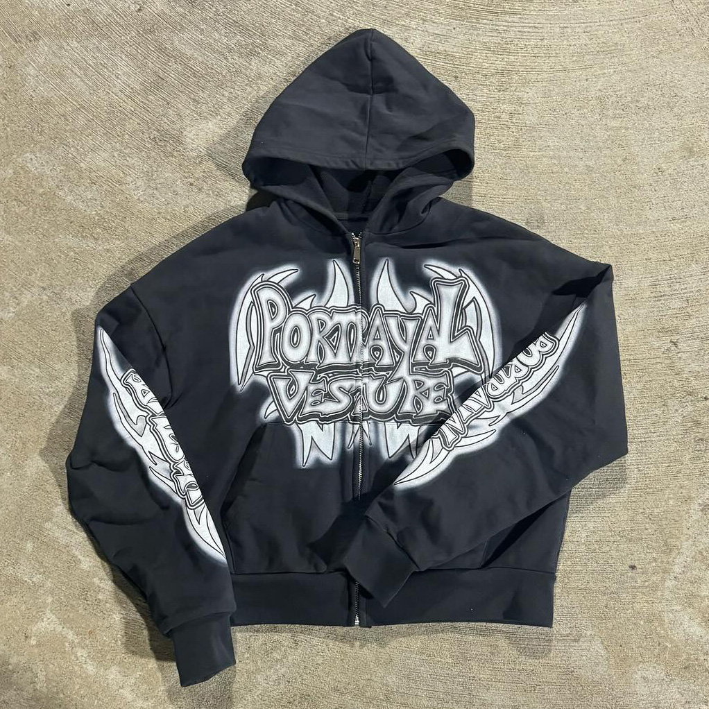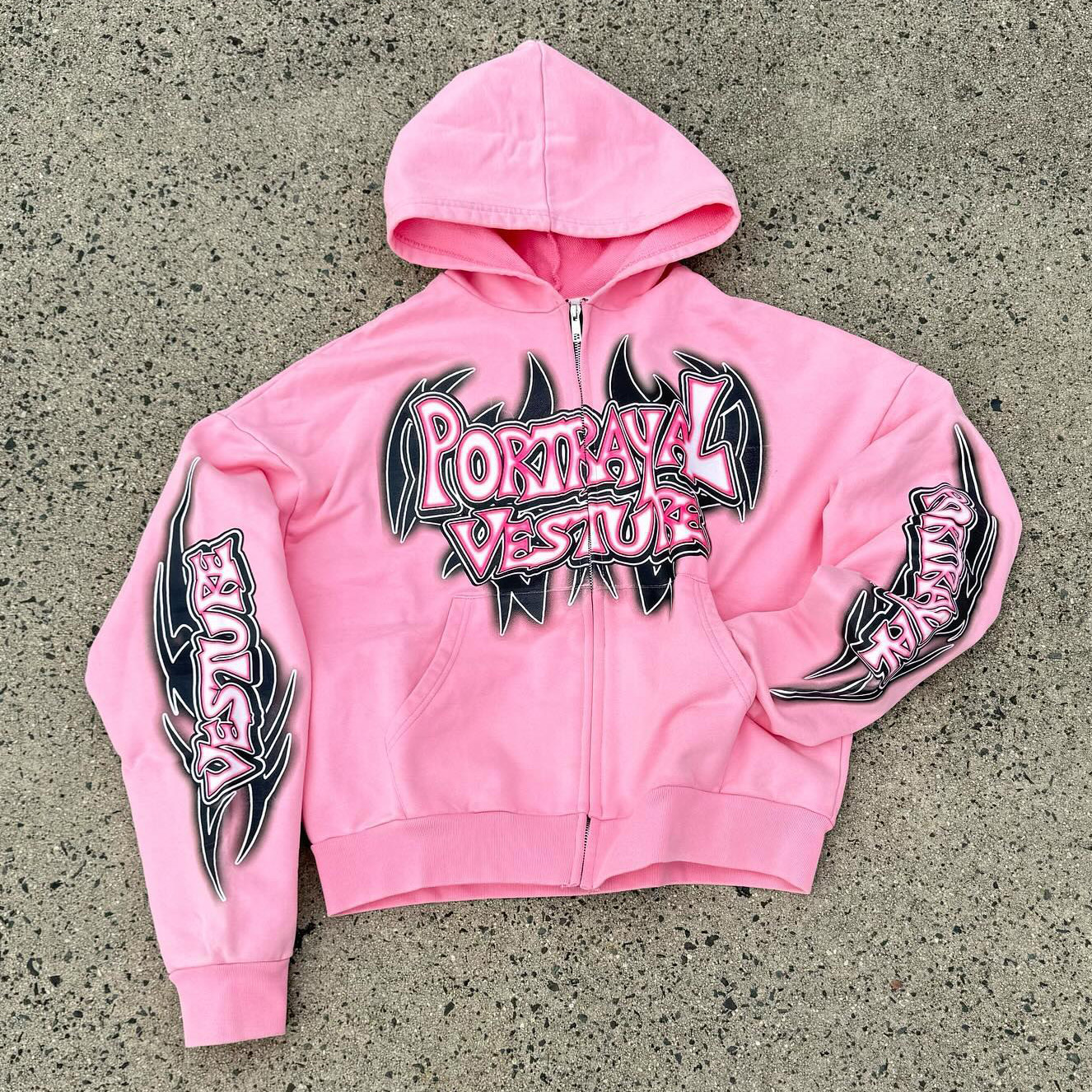 Portrayal Vesture Print Long Sleeve Zipper Hoodies