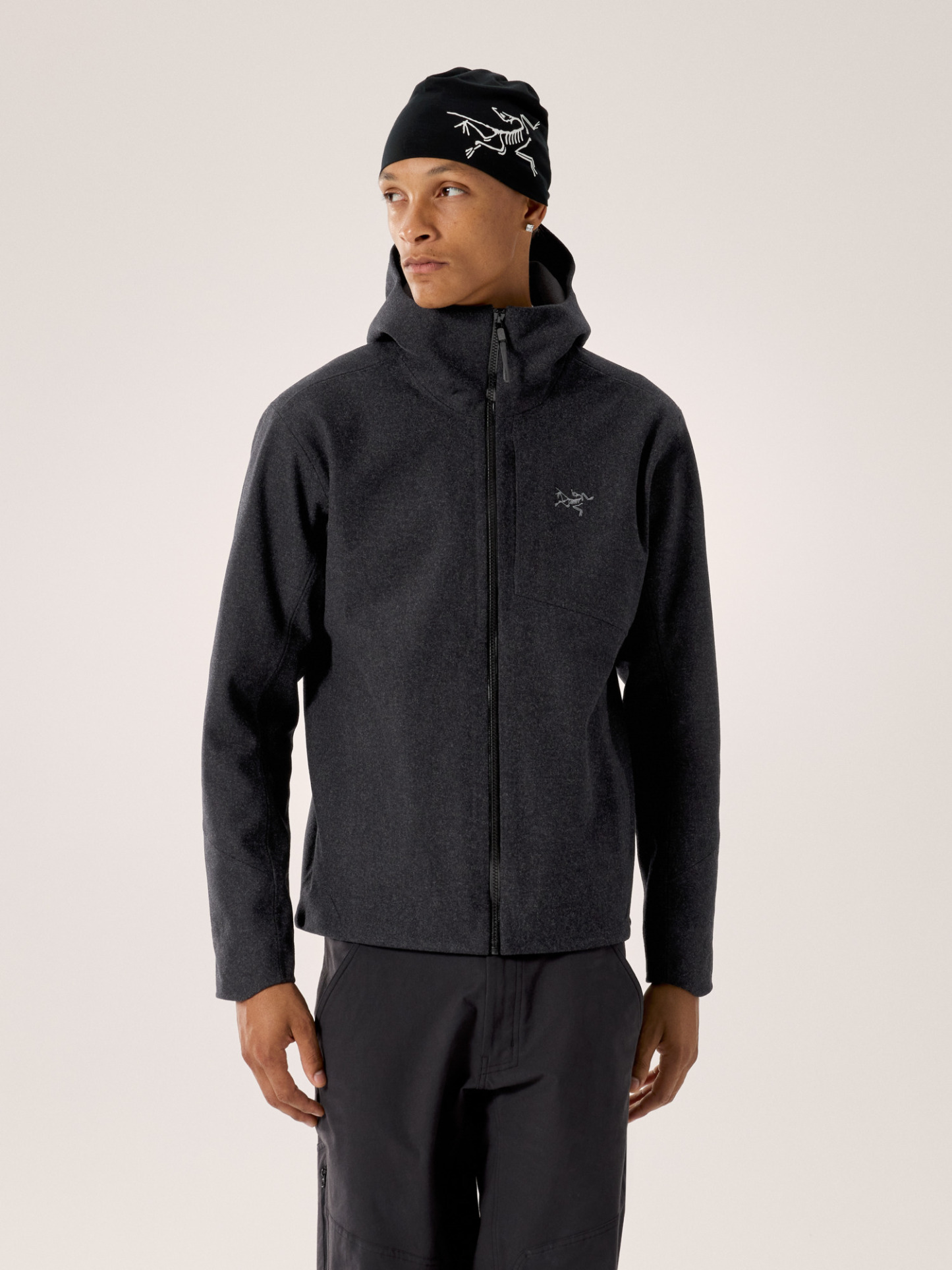 - Body: 2L Bonded Wool Softshell, 433gsm, Mixed wool face w/ 100% Recycled Polyester fleece backer - 85% Wool, 14% Nylon, 1% Elastane