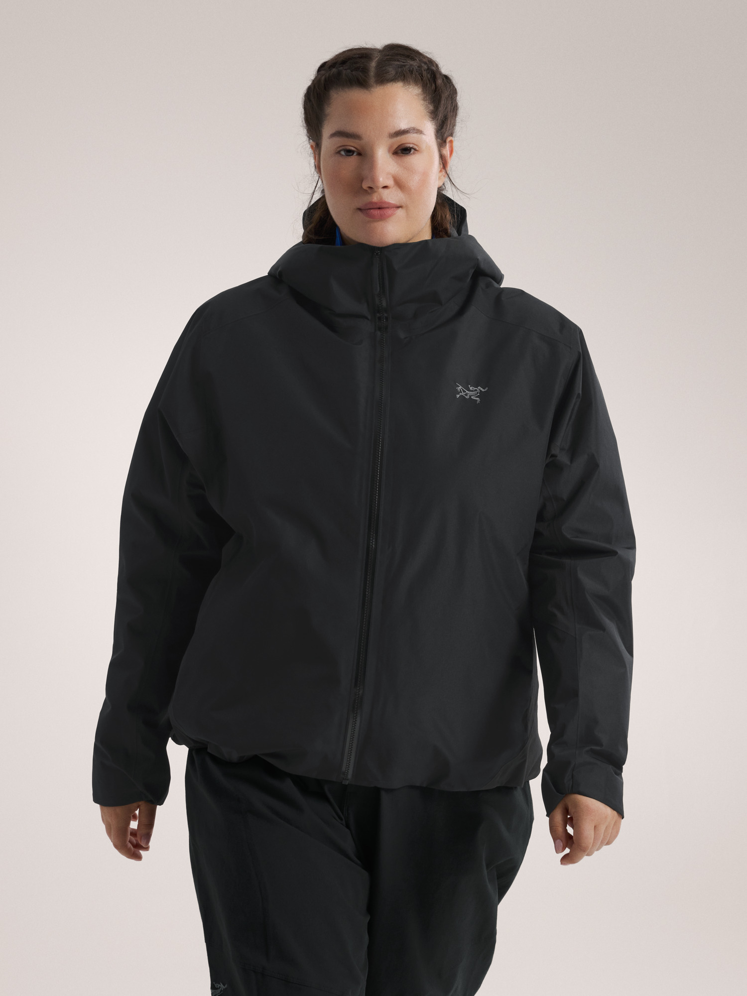 Perfect balance of targeted warmth, weather protection, ventilation, and stretch in a hoody made for winter hikes and mountain living. Hybrid Mapping Technology puts a PFAS-free GORE-TEX fabric on the body and sleeves. Breathable Fortius 1.0 softshell on the back and under the arms adds ventilation and stretch. Coreloft™ insulates, the warm, low-profile hood adjusts to move with your head, and the articulated patterning works with the stretch for freedom of movement.
